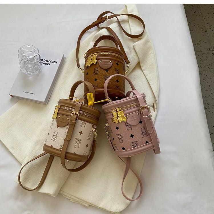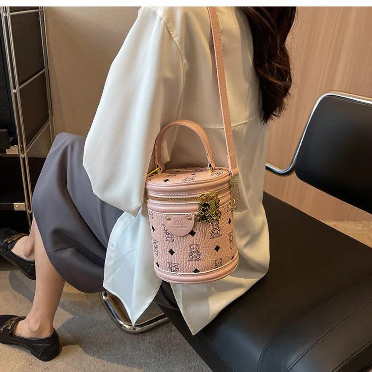 ASHINE Cylinder Bucket Bag Leather Shoulder Crossbody Bag