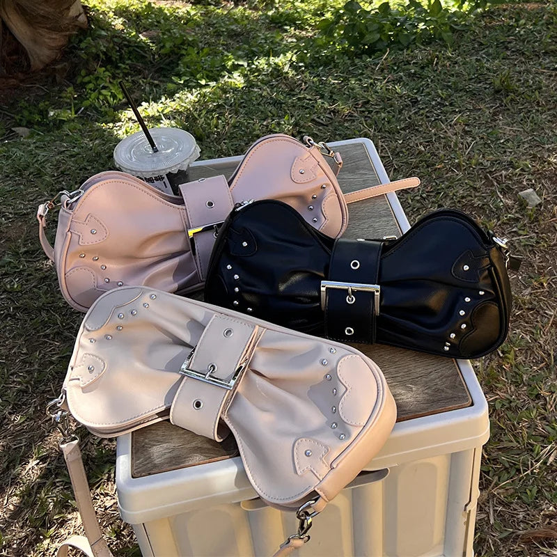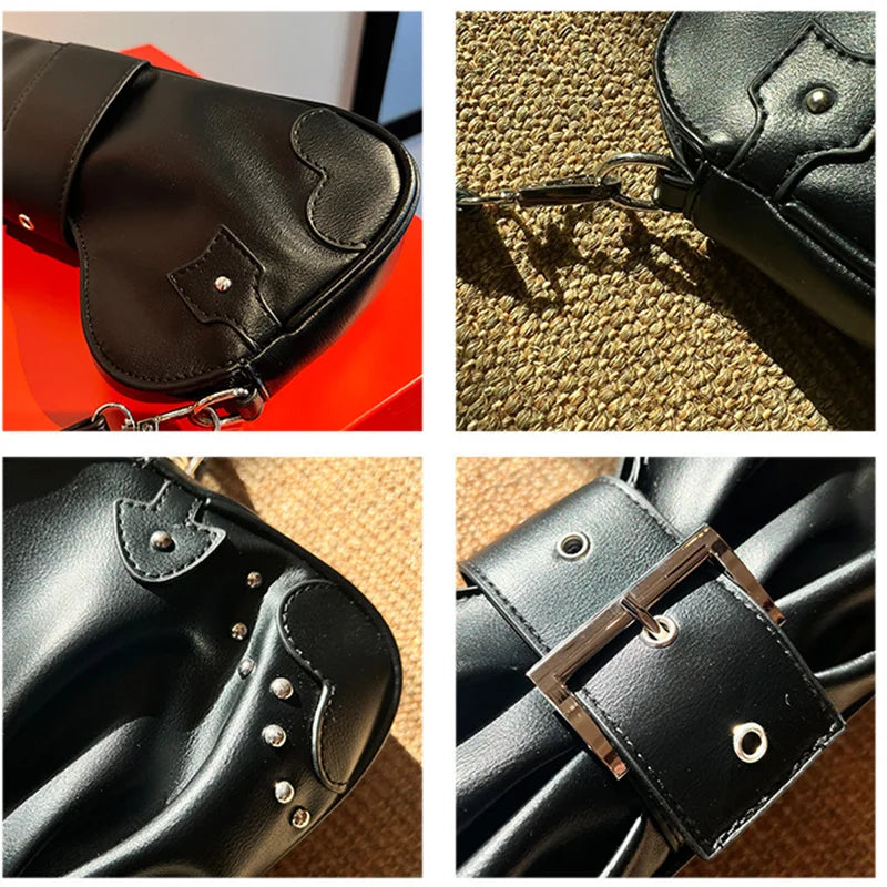 Elevate your style with this chic European ladies shoulder messenger bag featuring ruched design, belt lock, rivets, and spacious compartments. Perfect for everyday use.