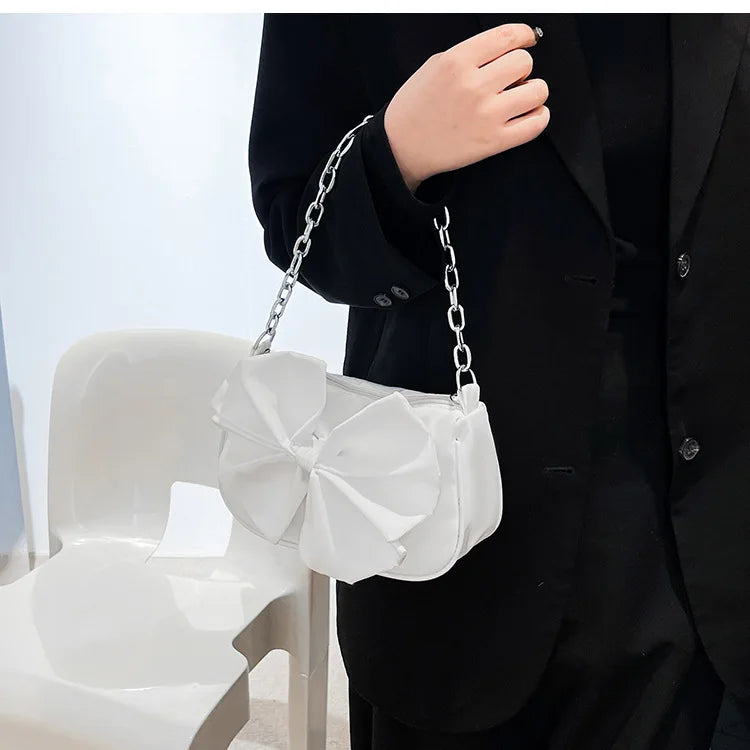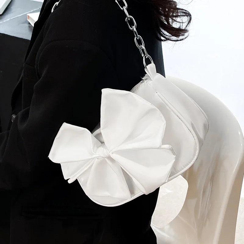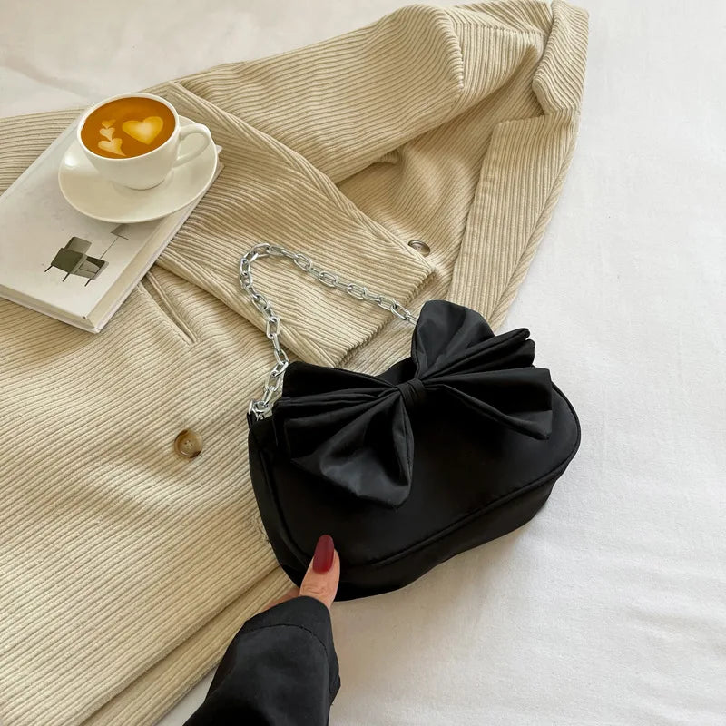 ASHINE Small Ladies Shoulder Bag Chain Women Underarm Bags Nylon Big Bow Purses