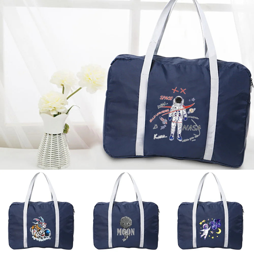 Stay organized on your holiday with this spacious travel tote featuring a cool astronaut print. Perfect for storing clothes and essentials, this duffle bag is ideal for weekend getaways.