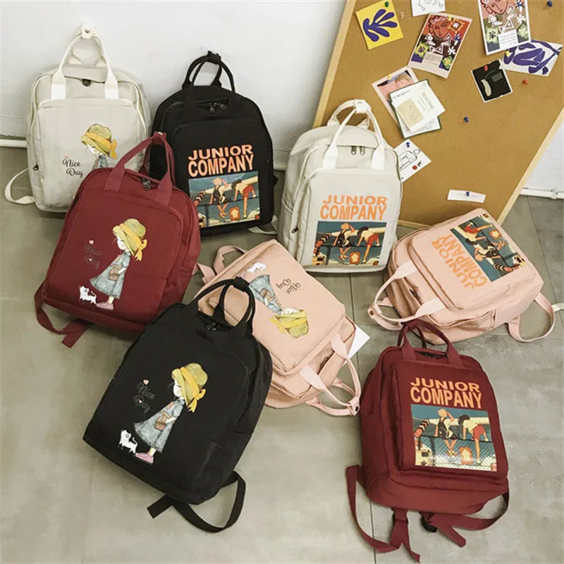 Stay stylish and organized with this waterproof backpack featuring retro cartoon printing, made of durable nylon.