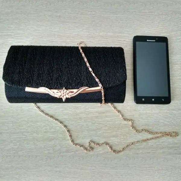 Elegant and stylish evening bag perfect for parties, banquets, and weddings. Features glitter design and comes with a chain strap for versatile carrying options.