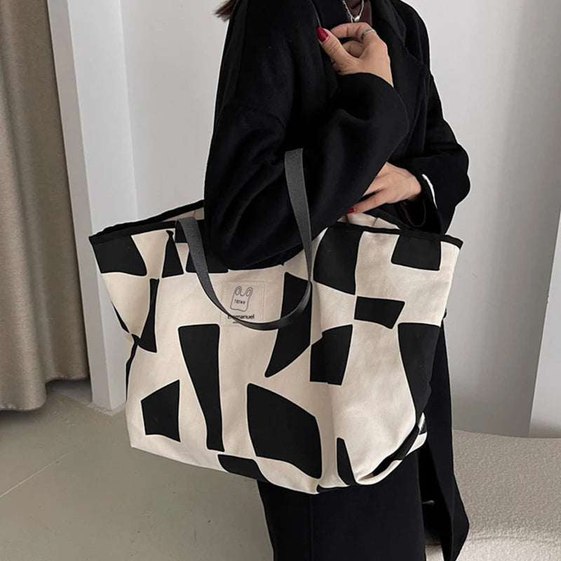 Description:Stay stylish and organized with this high-capacity shopping bag perfect for school or casual outings.Features: Geometric pattern design adds a trendy touch Spacious interior for all your essentials Durable canvas material for long-lasting use Ideal for shopping, school, or everyday activities Comfortable shoulder straps for easy carrying This product may...