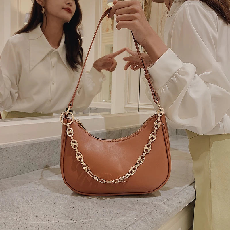 Autumn Texture Chain Bag Leather Armpit Handbag Girl Shoulder Wallet