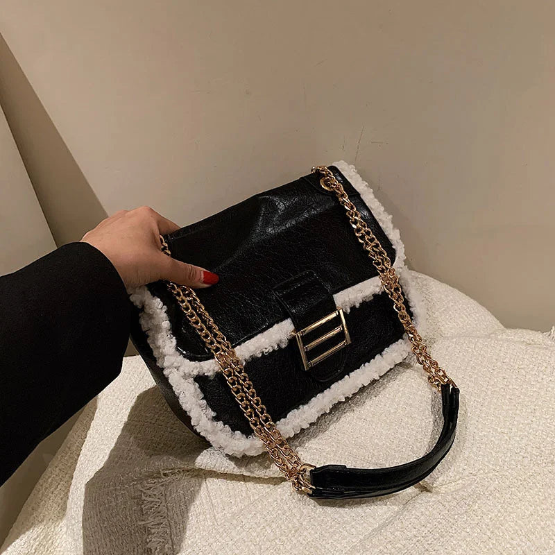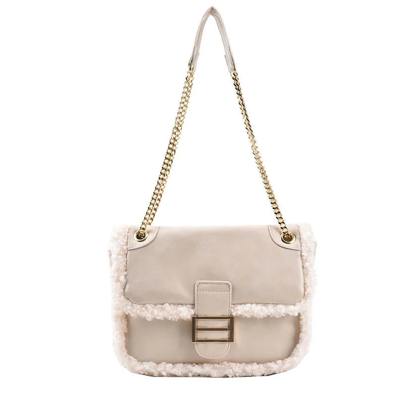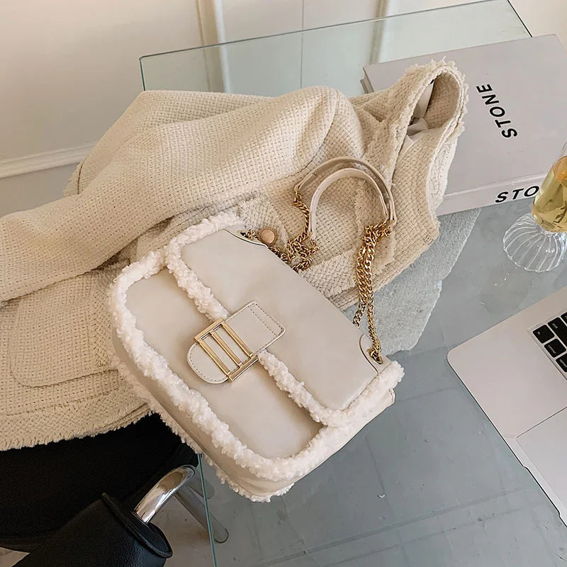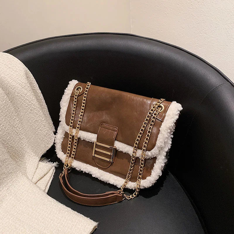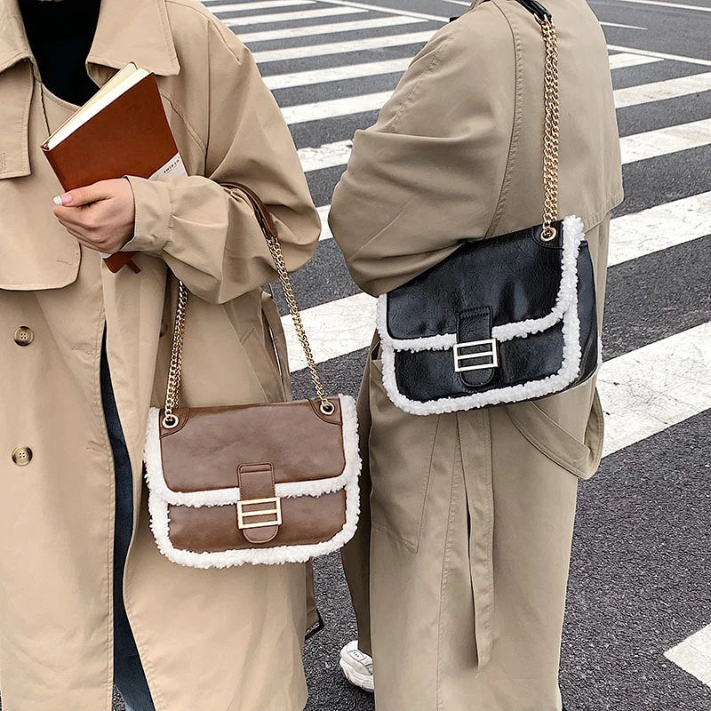 Stay warm and stylish with this lamb wool small bag that is perfect for autumn and winter. It features a vagrant crossbody design.