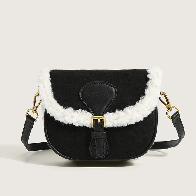 Stay stylish and cozy with this plush bag made of lamb hair. It can be worn as a shoulder bag or crossbody. A versatile handbag for the modern woman.