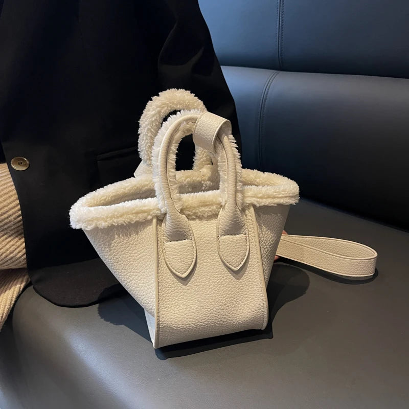 Autumn Winter Plush Bucket Bag PU Leather Tote Shoulder Bags