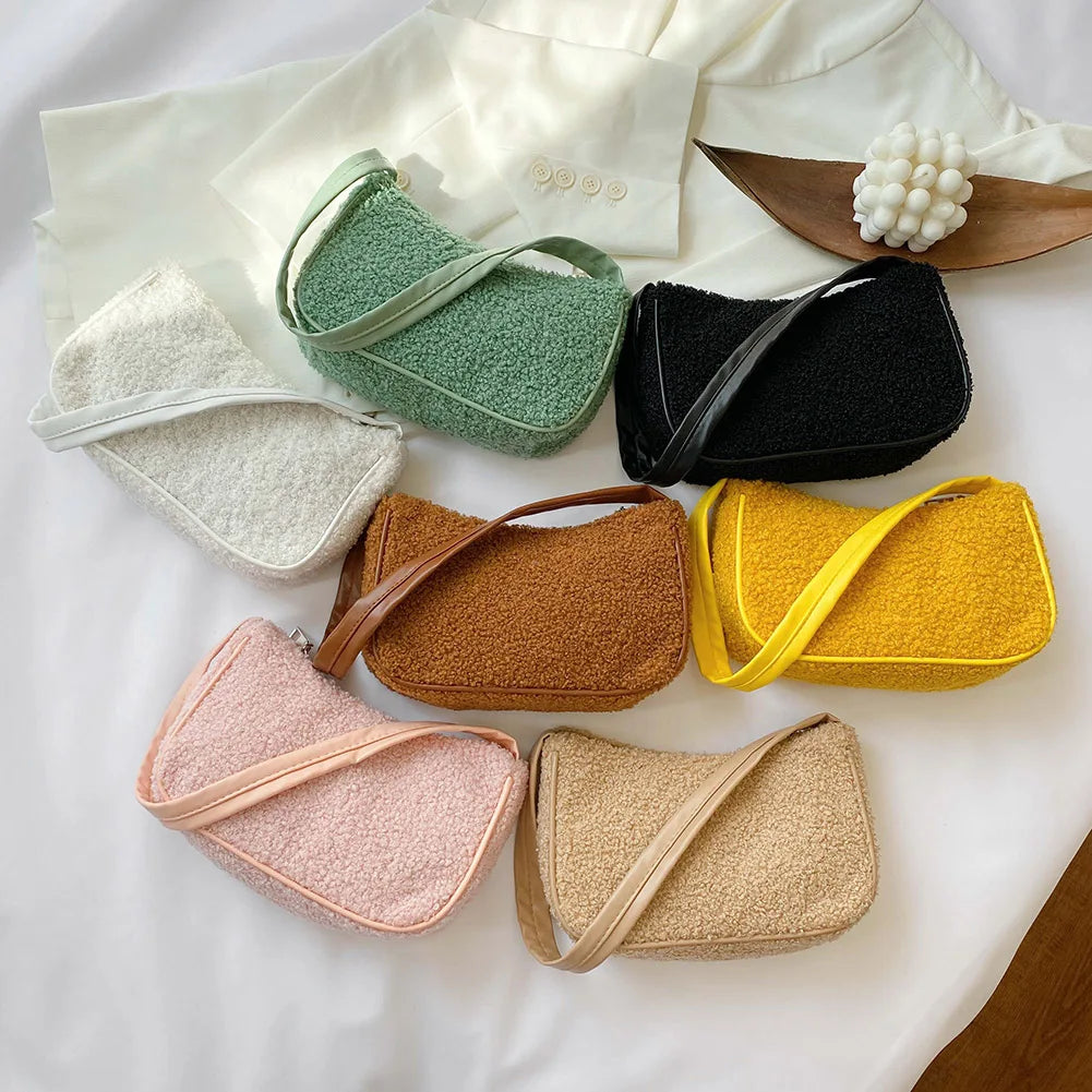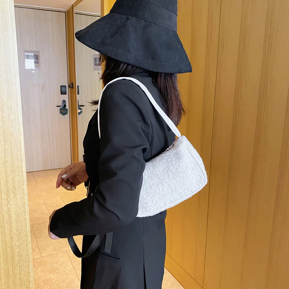 Autumn Winter Woolen Handbag Totes Women Solid Underarm Shoulder Bags