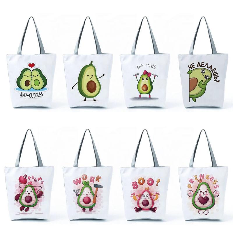 - Eco-friendly and reusable tote bag with avocado cartoons print