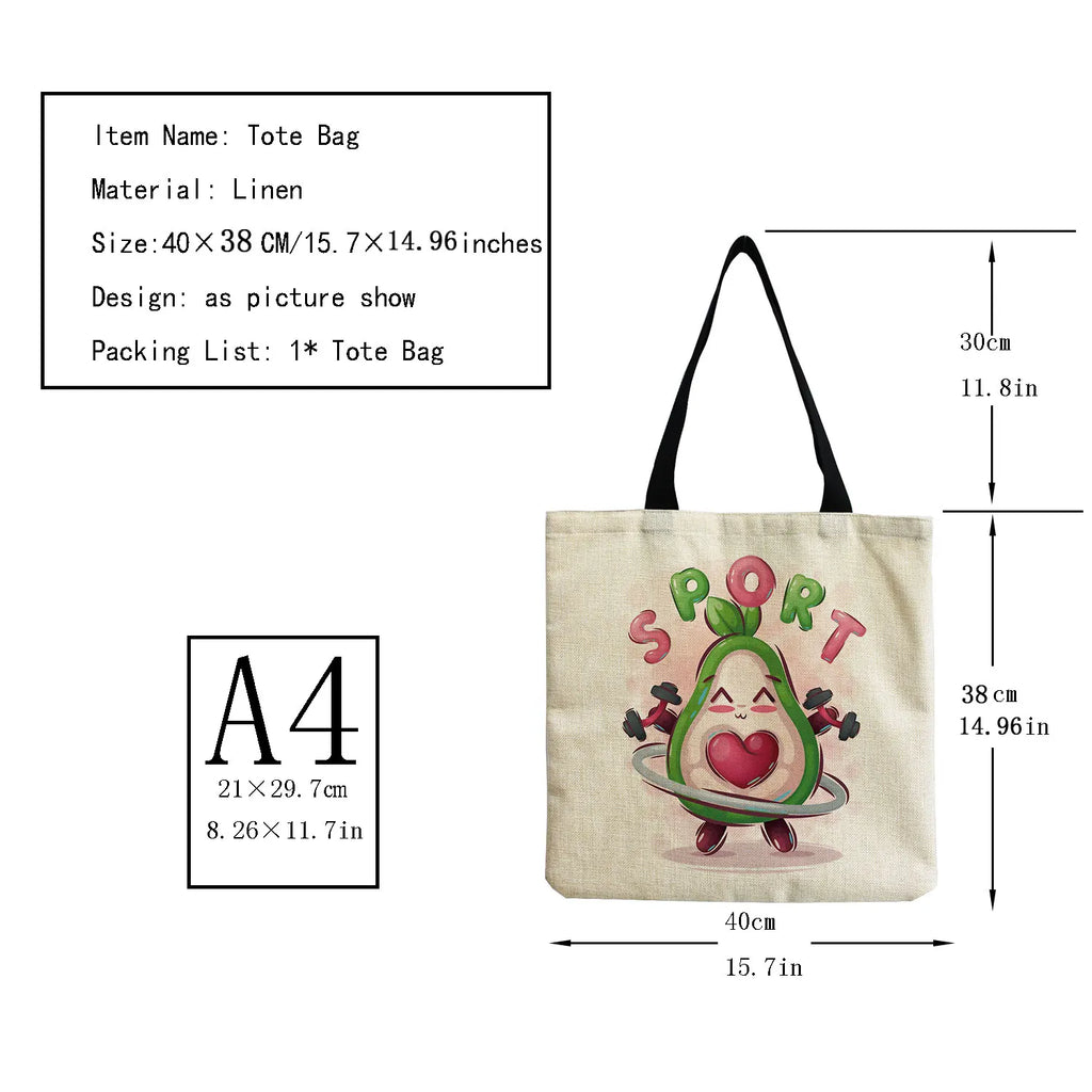 Avocado Fruit Cartoon Shopping Bag Eco Friendly Shoulder Bag