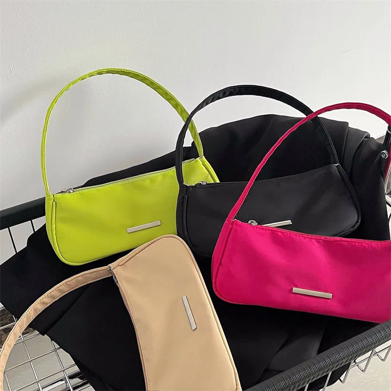 Upgrade your style with this trendy avocado green baguette underarm bag made of high-quality nylon. This versatile handbag is perfect for any occasion, adding a touch of sophistication to your look.