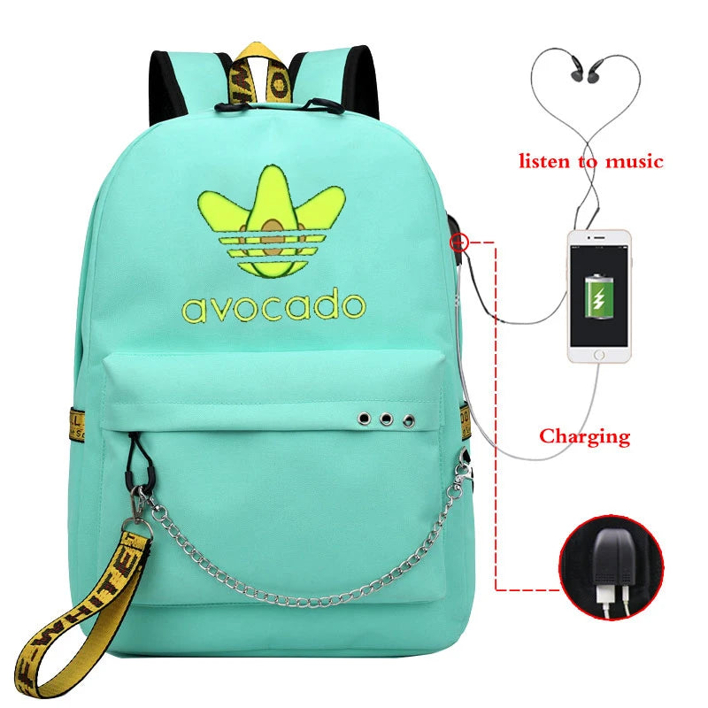 Avocado Mochila Para Ninas Girls&Boys Usb Cable School Bag Travel Teenager Backp