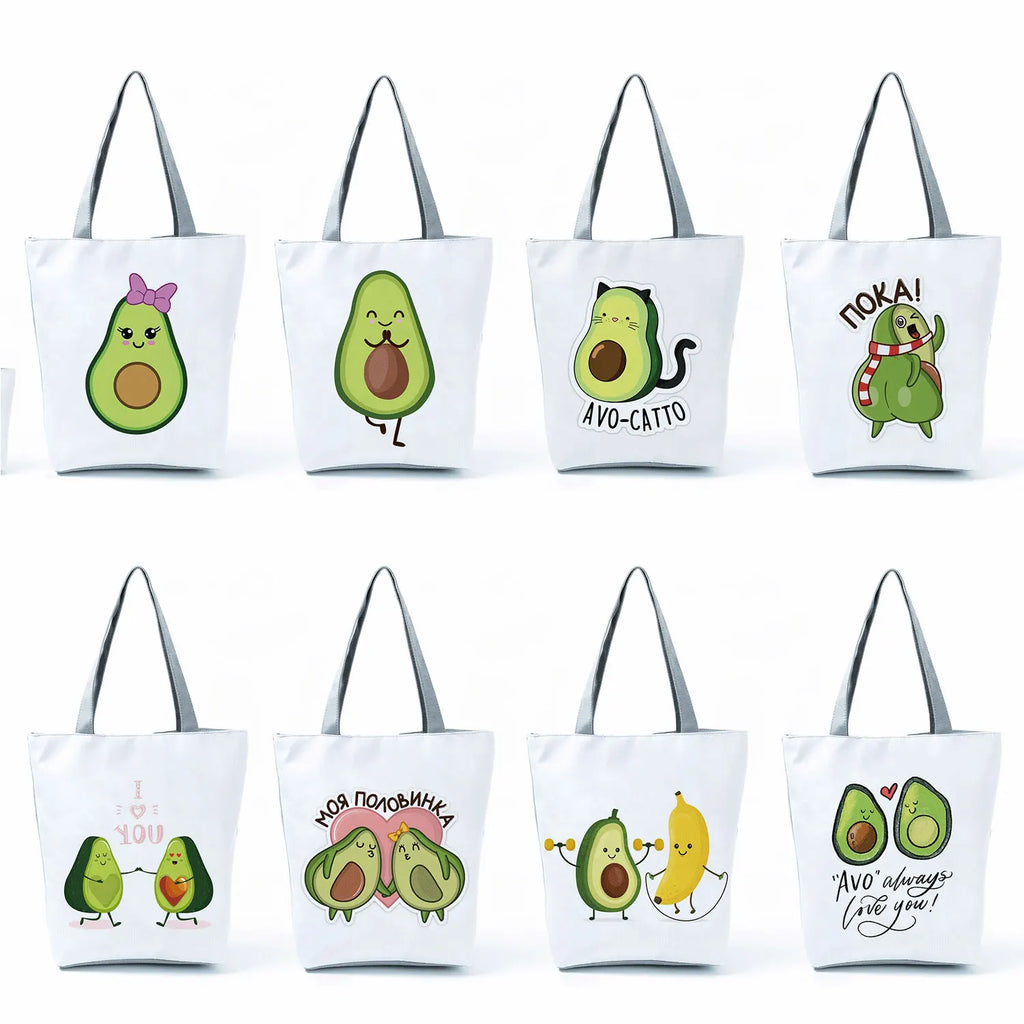 Get ready for summer with this cute avocado pattern tote bag. Perfect for shopping, beach trips, and travel. Eco-friendly and reusable.