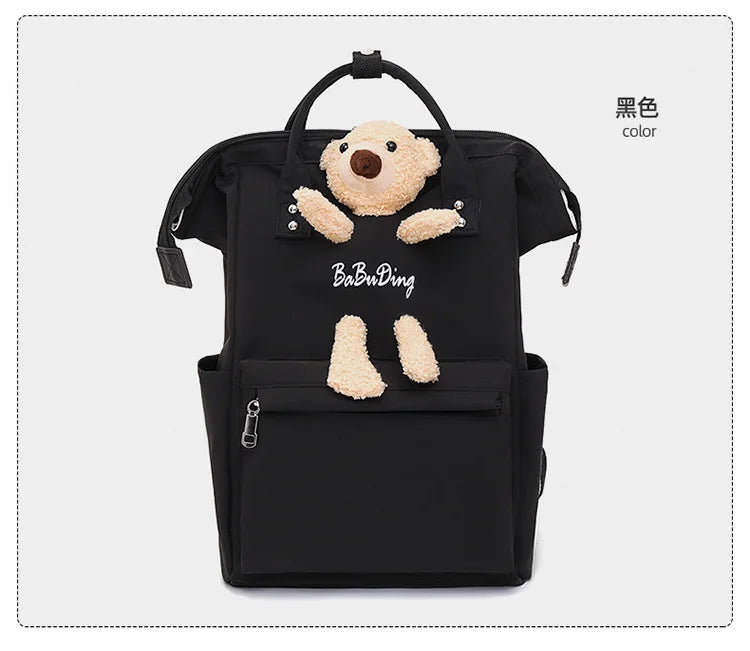 This backpack combines college style with a cute cartoon bear doll design. It's perfect for students and casual outings.