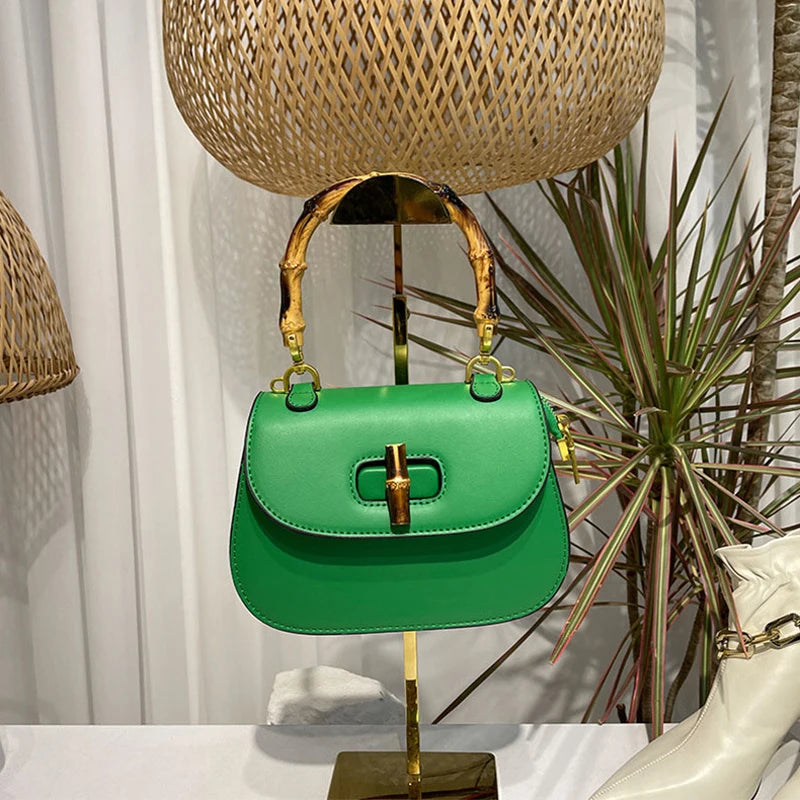 Bamboo Handle Women Handbags Shoulder Bags Pu Leather Crossbody Bag Vintage