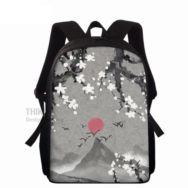This school bag features an ink painting bamboo design, making it a stylish choice for college students. It offers ample storage capacity and is durable for everyday use.