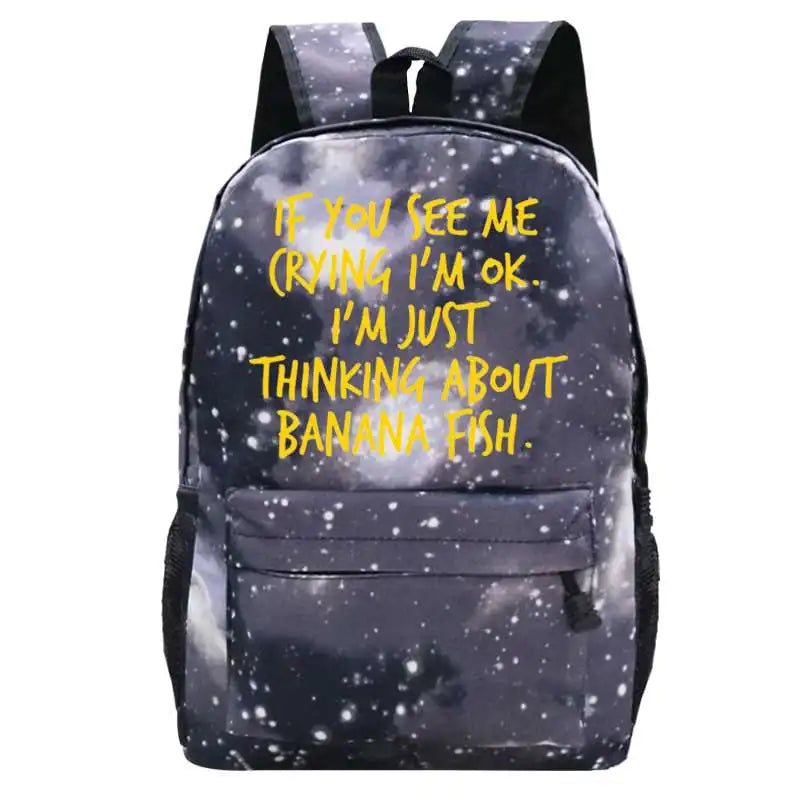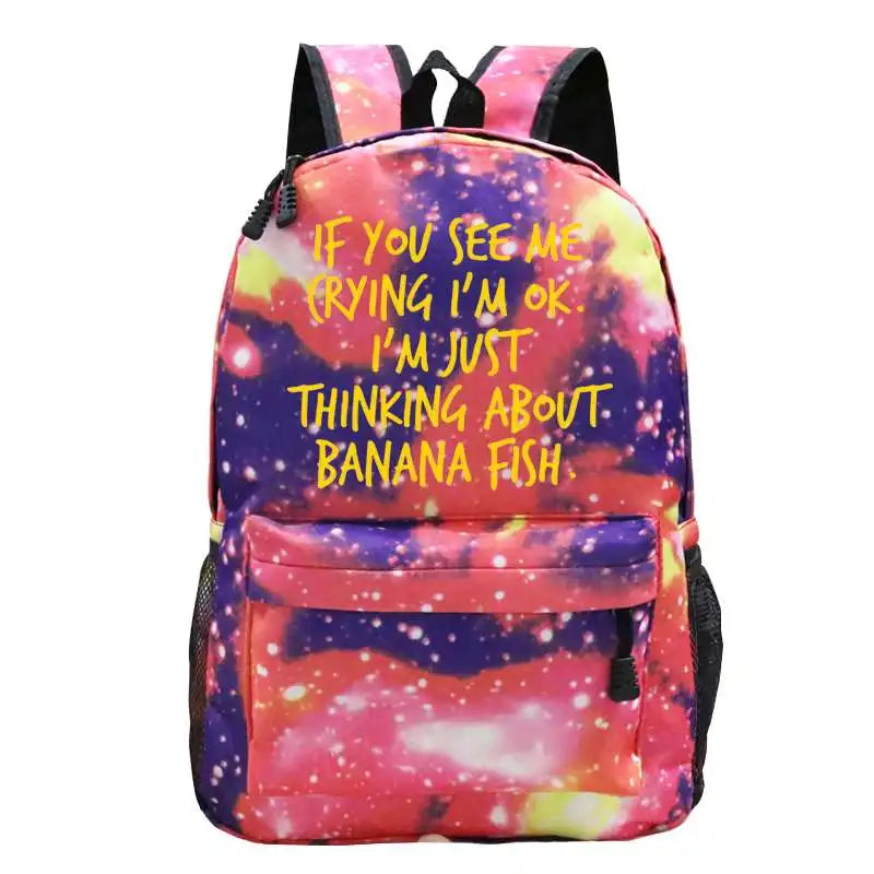 Get ready for school with this stylish Banana Fish backpack designed for teen girls. It is perfect for middle school students with its solid color and durable construction.