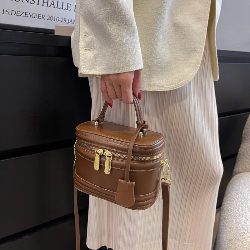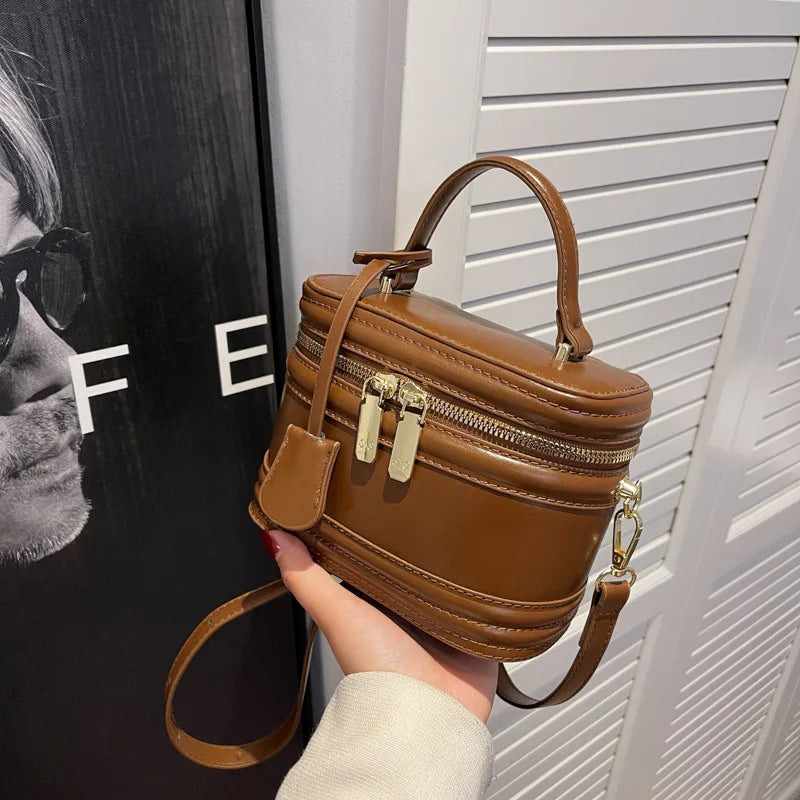 This stylish barrel-shaped shoulder bag is perfect for women on the go. It can be used as a top handbag, crossbody bag, or clutch bag for various occasions.