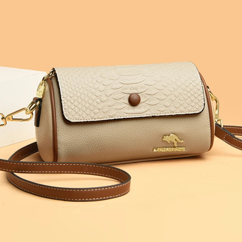 Barrel-shaped Soft Leather Handbag Shoulder Crossbody Bag for Women