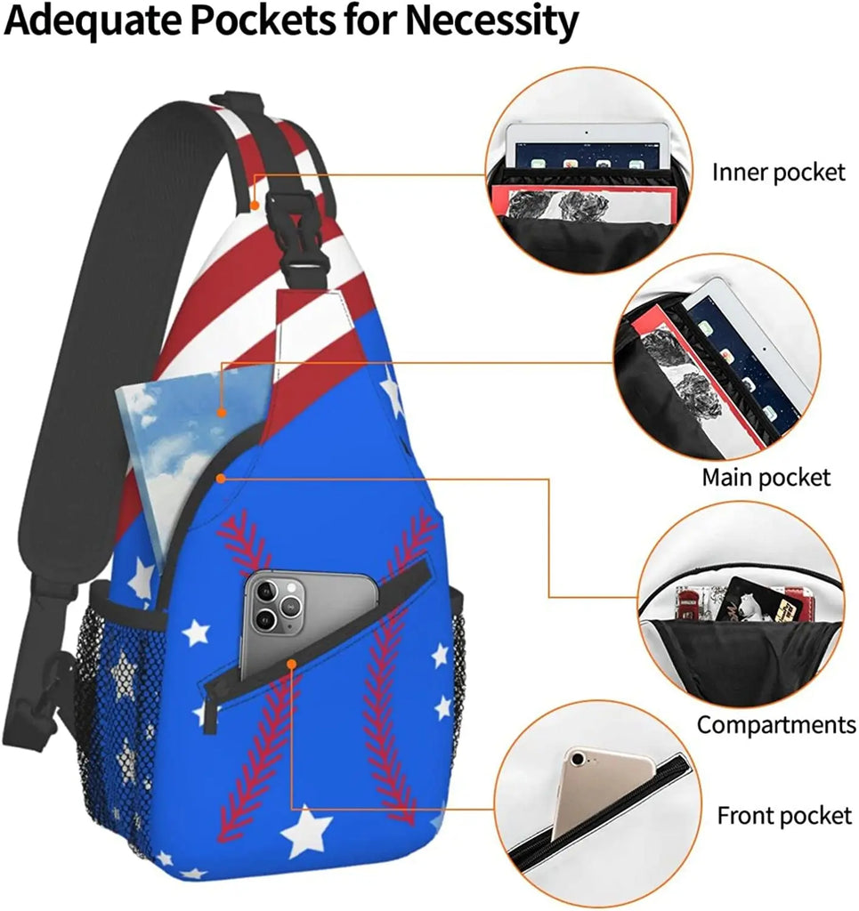 This versatile baseball chest bag is perfect for both men and women on the go. Whether it's for hiking, travel, or everyday use, this crossbody bag offers convenience and style.