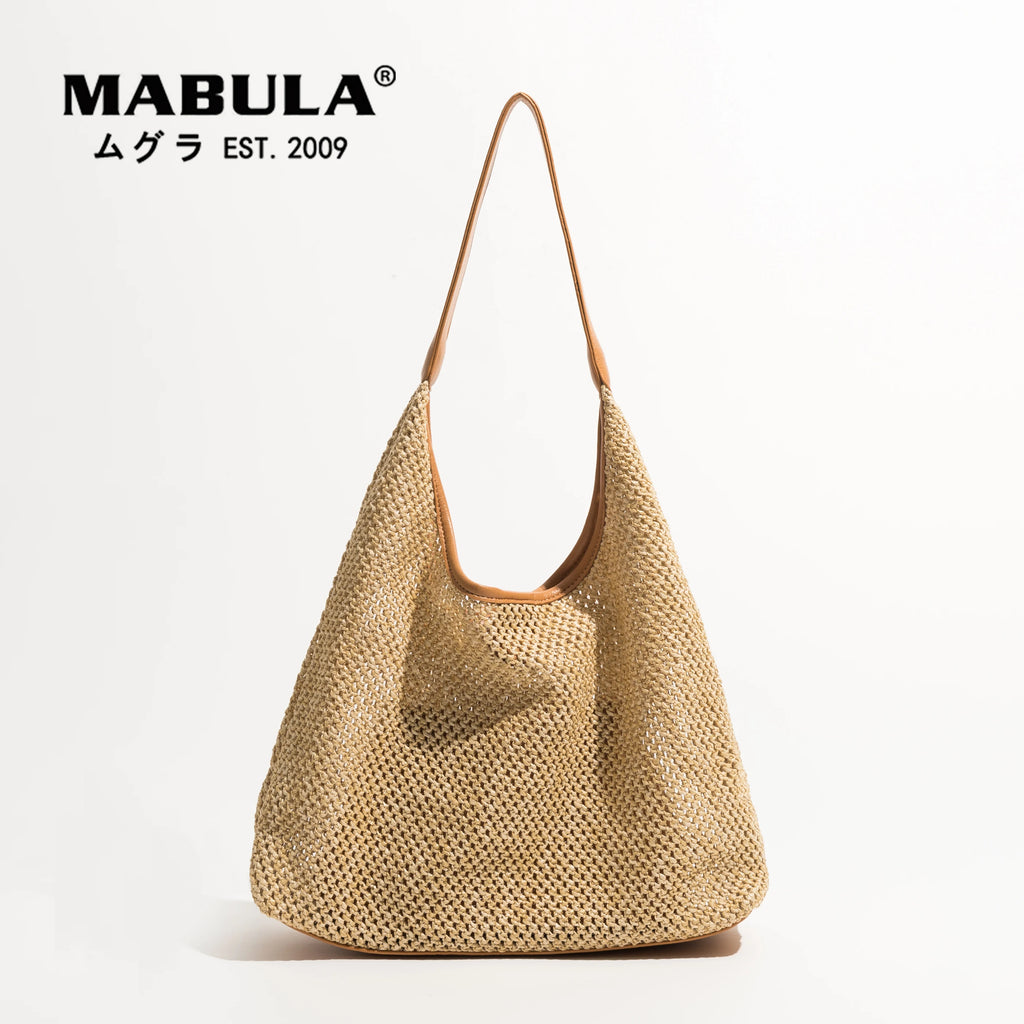 Beach Vacation Women Straw Bags Large Tote Shoulder Bag 2 Pcs Set
