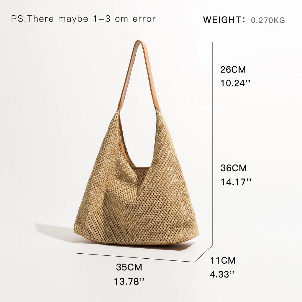 Stay stylish at the beach with this 2-piece set of plaited straw bags. The large tote and hobo crossbody bag offer ample space for all your essentials. Perfect for a casual summer look.