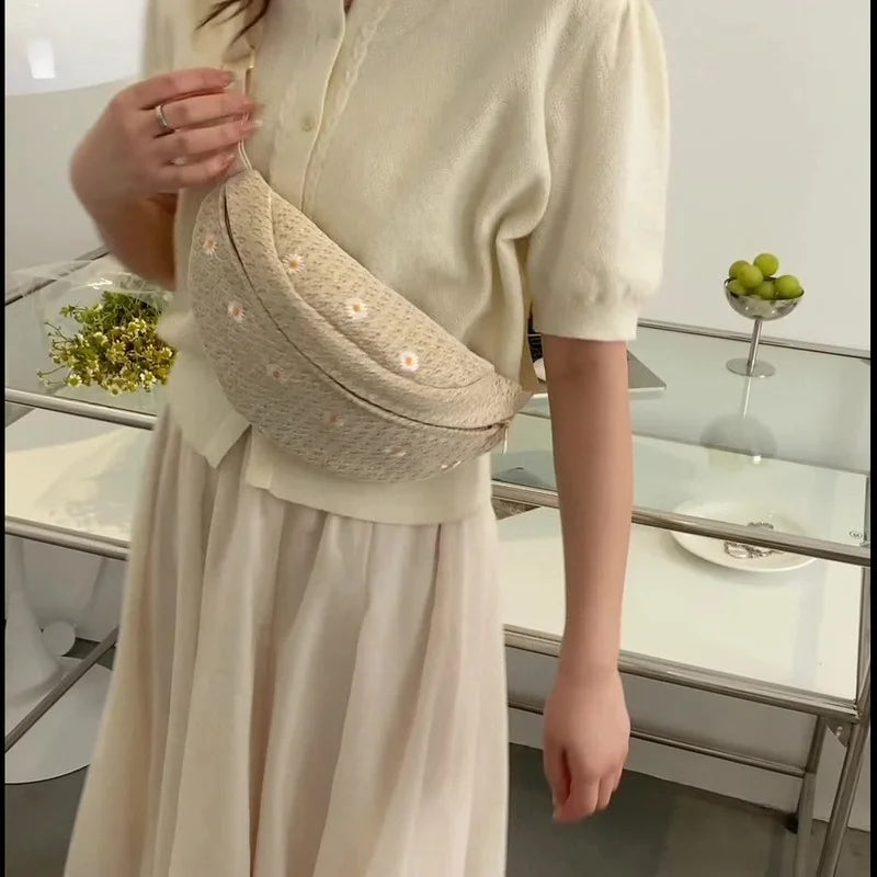 Beach Women Waist Pack Bag Straw Bag Purse Casual Large Phone Belt Bag