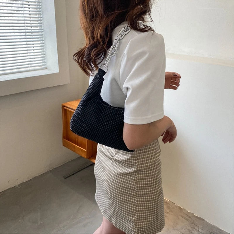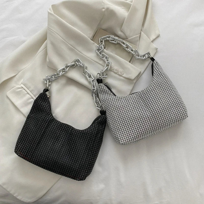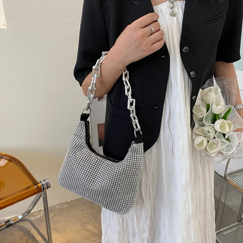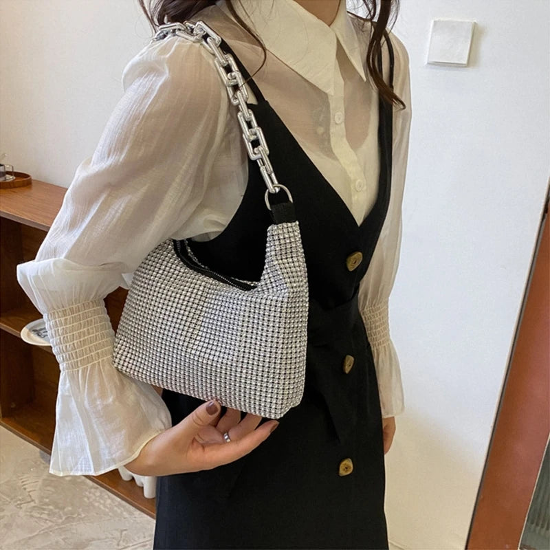 Description:This stunning evening clutch bag is adorned with rhinestones and features intricate beaded crystal diamonds. Perfect for dinner parties, weddings, or any special occasion.Features: Elegant rhinestone embellishments Intricate beaded crystal diamonds Ideal for evening events Versatile as a clutch or shoulder bag Perfect accessory for weddings and parties This product...