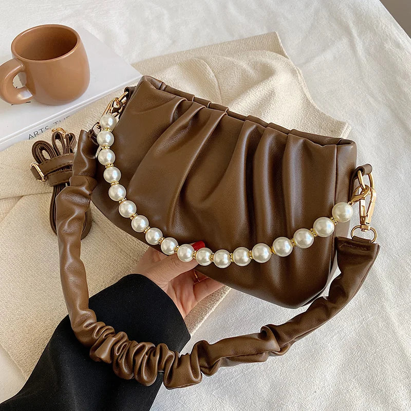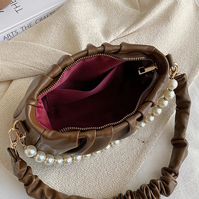 Beaded Pearly Crossbody Bag Women Shoulder Handbag Square Satchel Totes