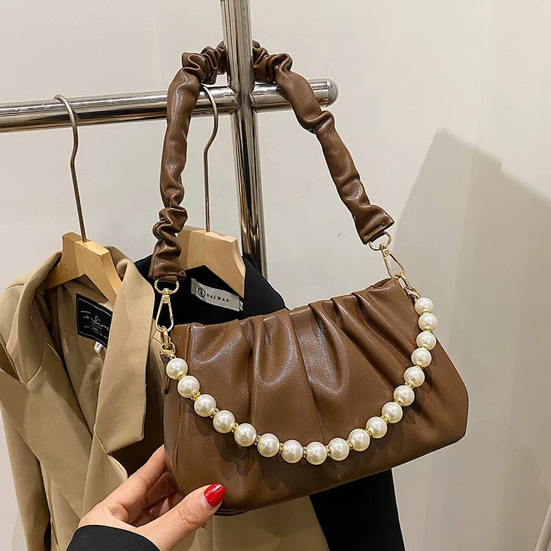 Elegant and stylish beaded pearly crossbody bag perfect for women. This handbag features a single shoulder strap and a square design that is both functional and fashionable.