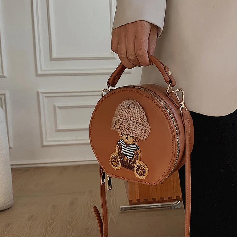 This cute cartoon bear handbag is perfect for women who love vintage style. Made of high-quality leather, it features a small round design ideal for everyday use.