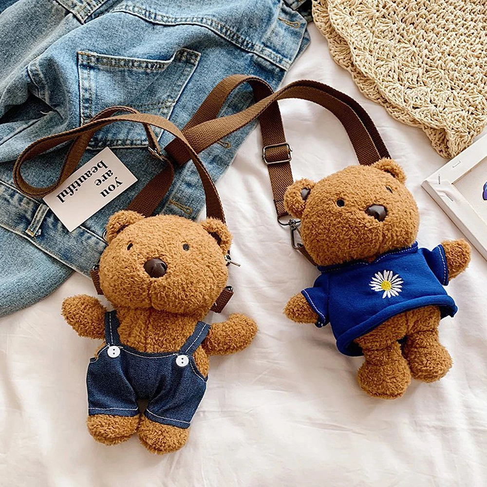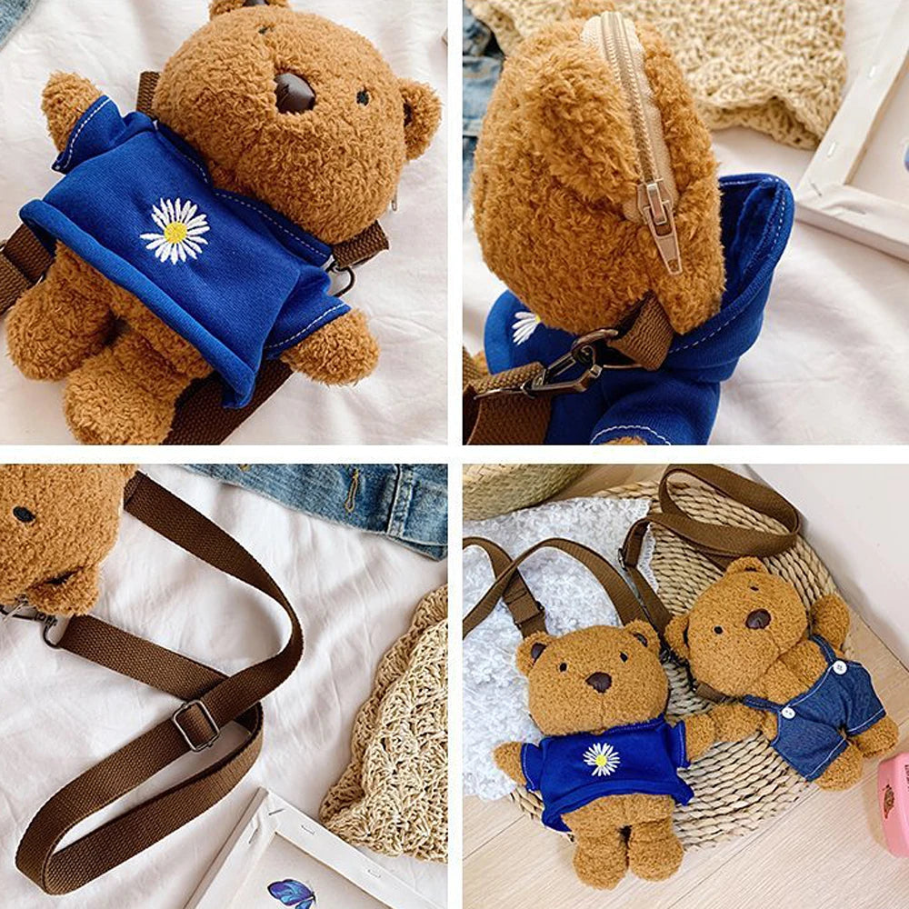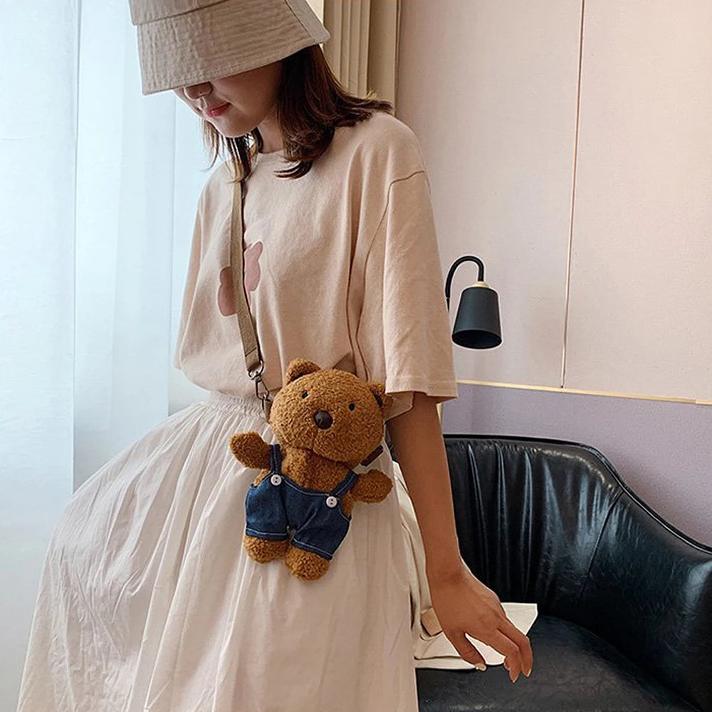 This adorable cartoon plush bear crossbody bag is perfect for women and girls. Features a telescopic shoulder strap for easy adjustment.