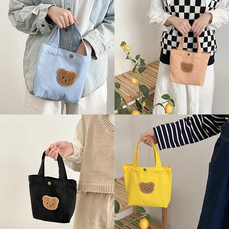 Carry your essentials in style with this adorable bear embroidered clutch purse handbag. Made of durable canvas material, this handbag is both fashionable and functional.