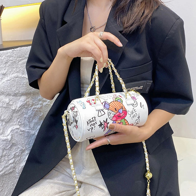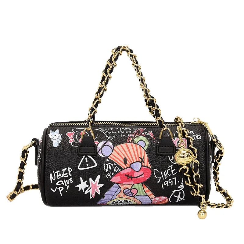 Bear Graffiti Lady's S Chain Phone Shoulder Bag Handbag for Women