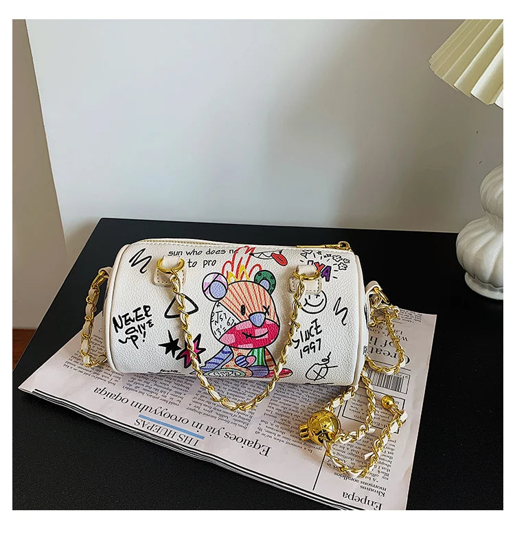 Bear Graffiti Lady's S Chain Shoulder Bag Women's Handbags