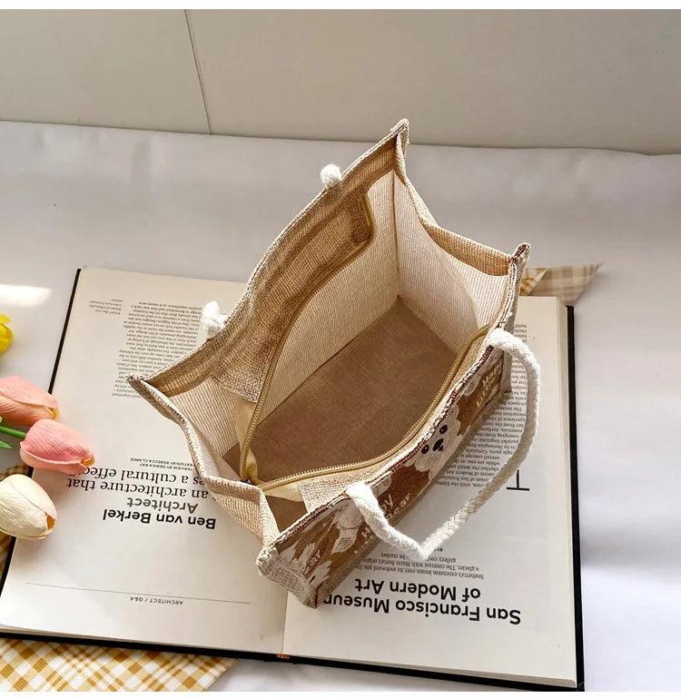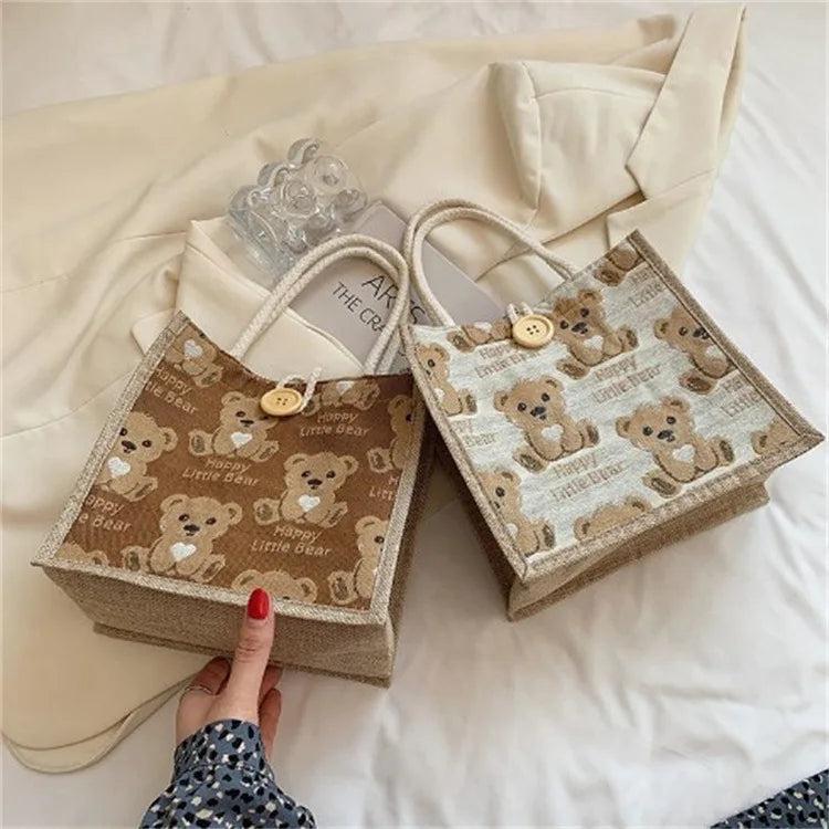 Bear Linen Handbag Women's Bag Small Handbags Shoulder Bag Student Tote Bag