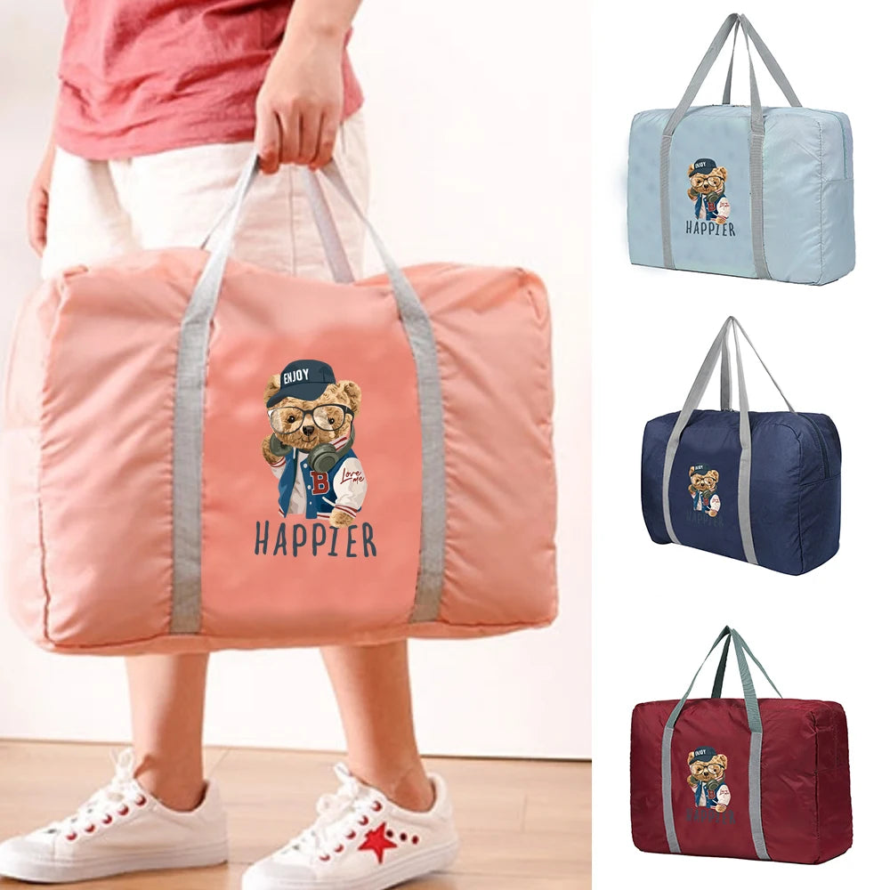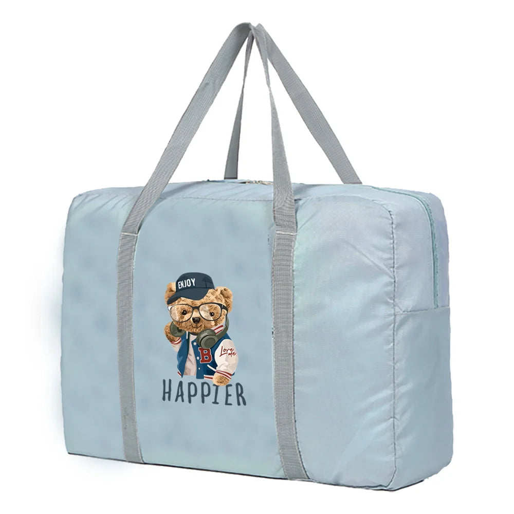 Bear Pattern Foldable Travel Bag Clothing Storage Duffle Unisex Handbag