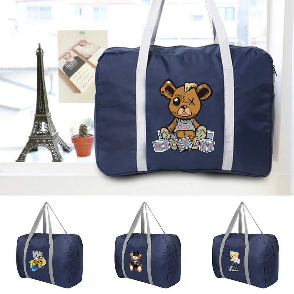Get ready for your next travel adventure with this folding travel bag that offers a spacious design for packing all your essentials. The bear printing adds a fun touch to your luggage. Perfect for both men and women.