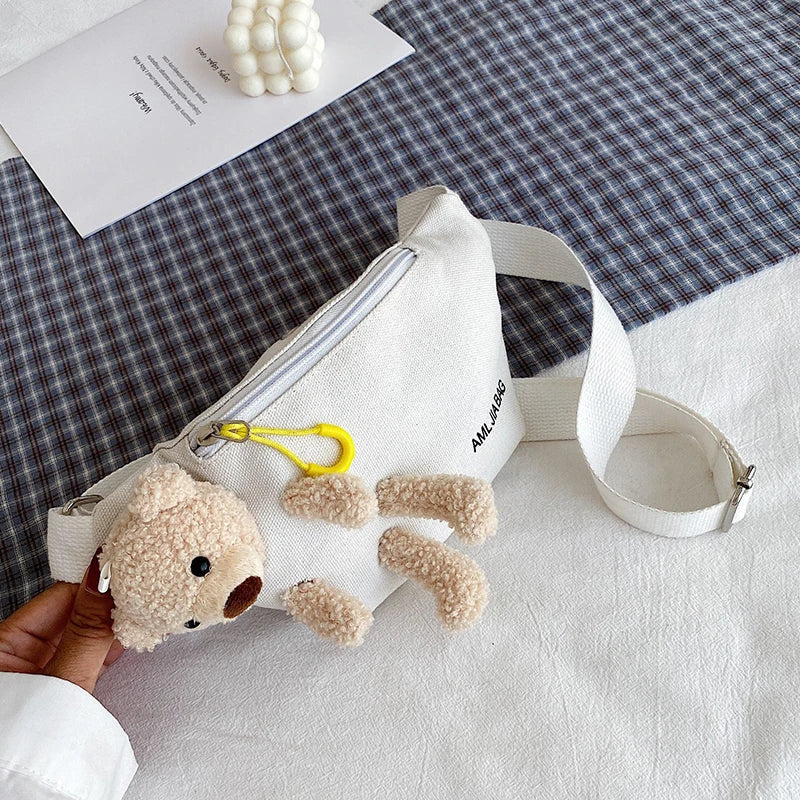 Bear Women's Waist Bag Canvas Belt Bags Crossbody Chest Female Fanny Pack