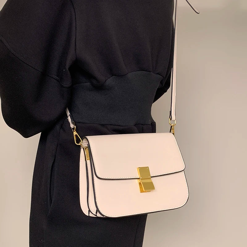 Beige Lock Shoulder Bag Lady Leather Bag Party Female Cross Body Bag