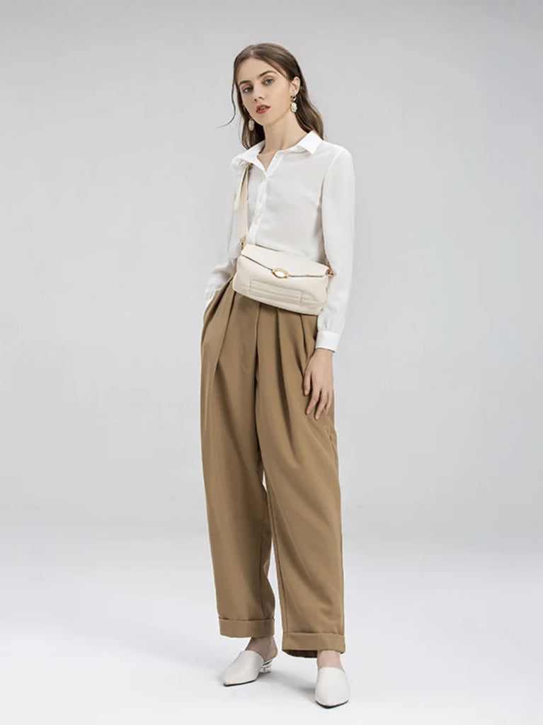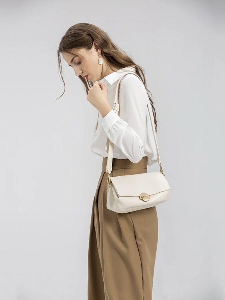Elegant beige shoulder bag made from high-quality PU leather, perfect for women of all ages. This bag is versatile and stylish, suitable for various occasions.
