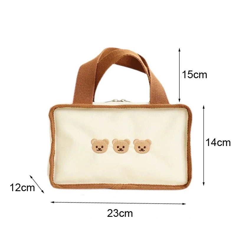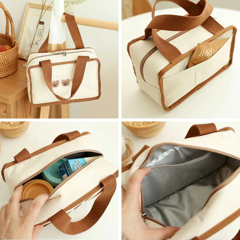 Keep your baby's food cold with this cute and practical handbag. Made of canvas with thermal insulation, zip closure, and bear embroidery.