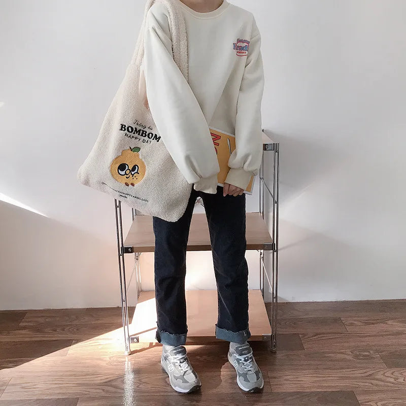 Berber Fleece Shoulder Bag Plush Handbag Canvas Tote Large Capacity