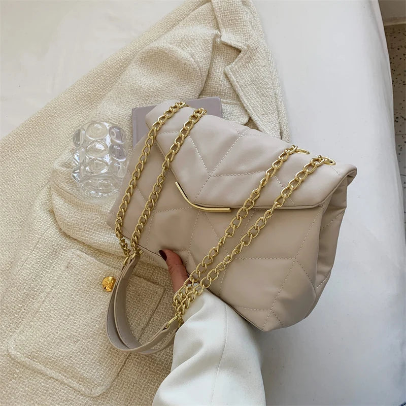 Big Size Quilted Shoulder Bag for Women Chain Leather Crossbody Bag