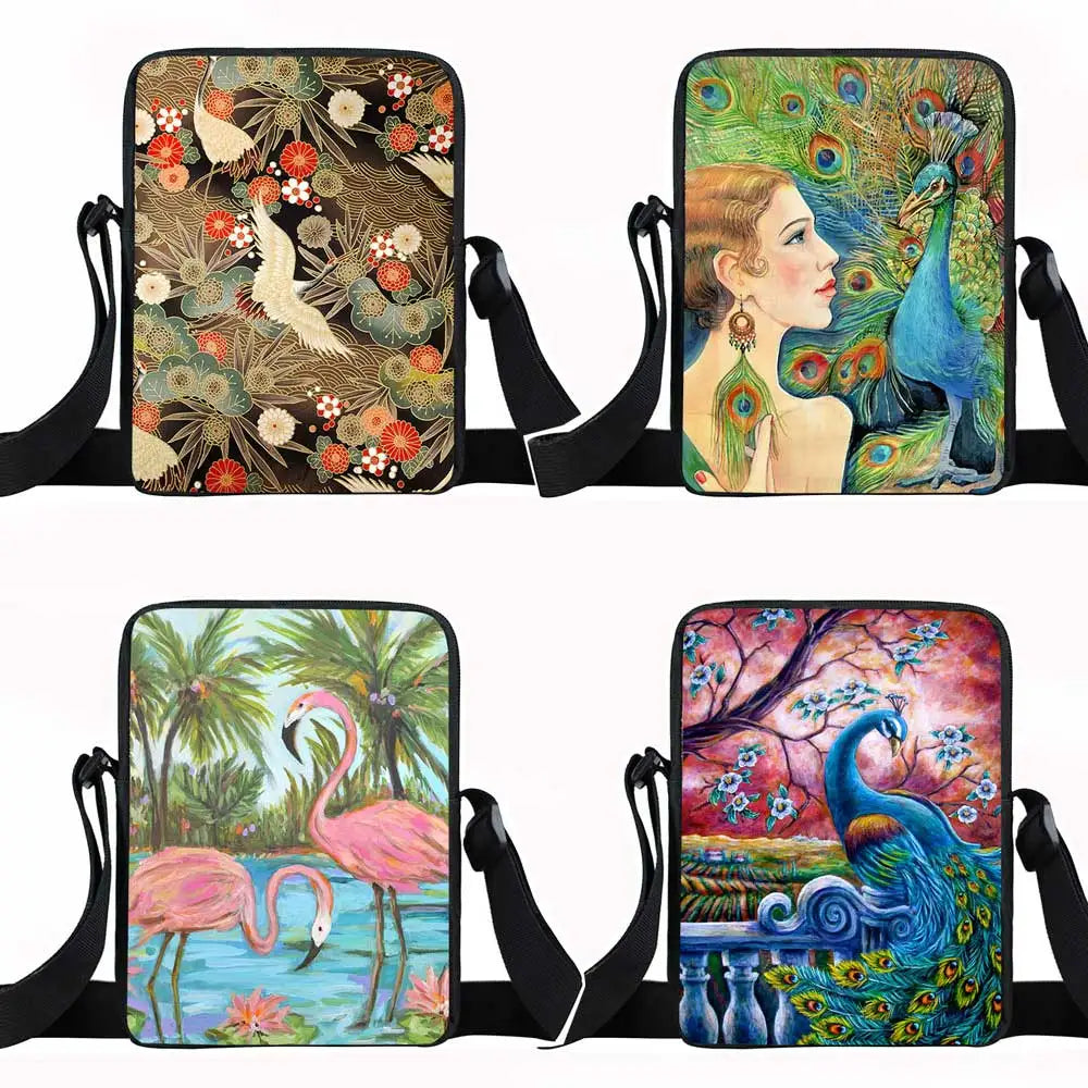 Bird Crane Peacock Messenger Bag Women Crossbody Handbag