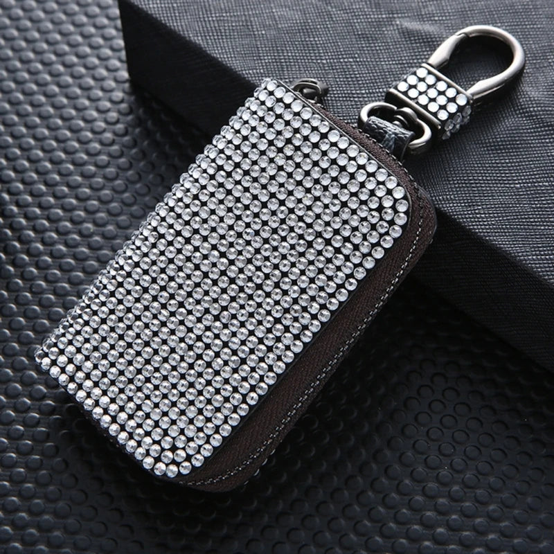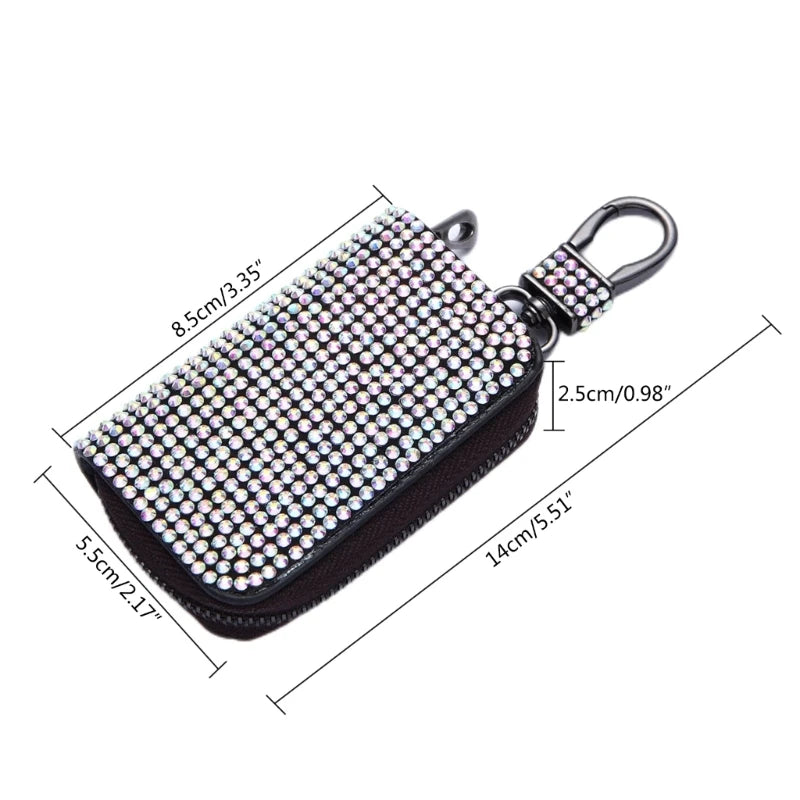 Bling Crystal Car Key Case Wallet Rhinestone Keychain Zipper Bag