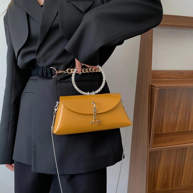 Bling Crystal Green Beige Evening Clutch Handbag with Chain