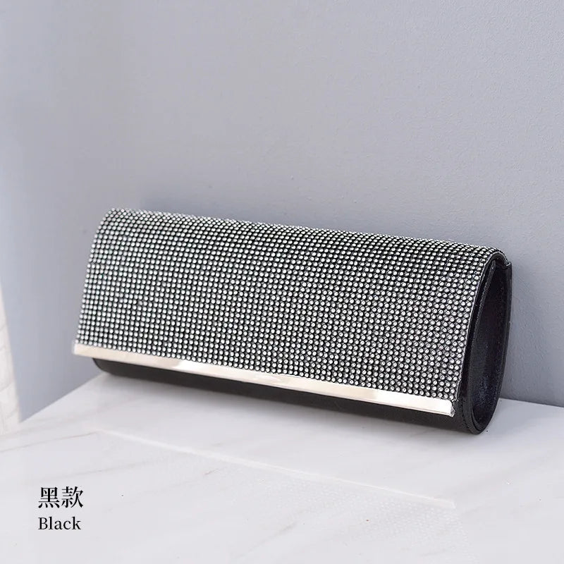 This stunning evening bag is adorned with rhinestones for a glamorous look. Perfect for special occasions or nights out.