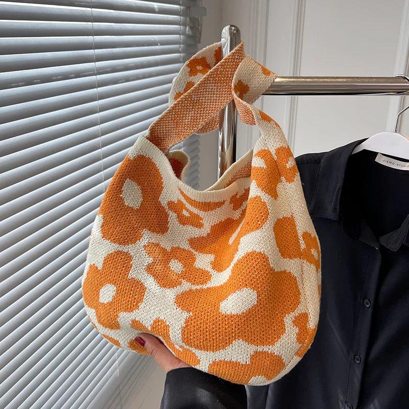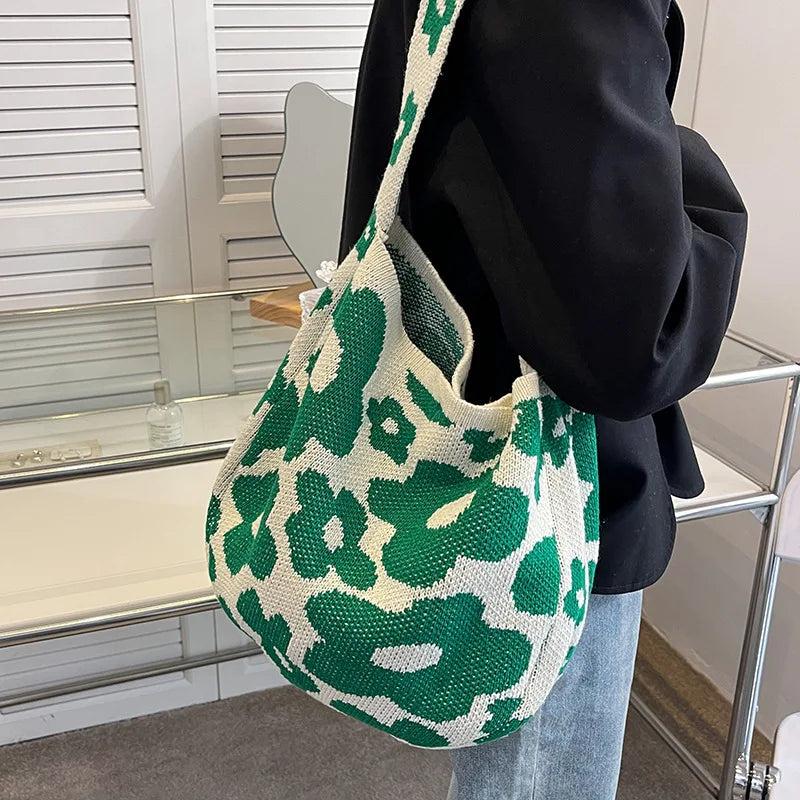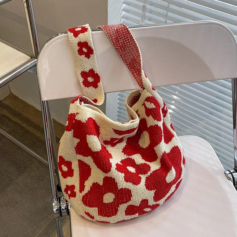 Stay stylish during vacations with this bohemian knitted shoulder bag featuring summer flowers design. Perfect for carrying all your essentials.