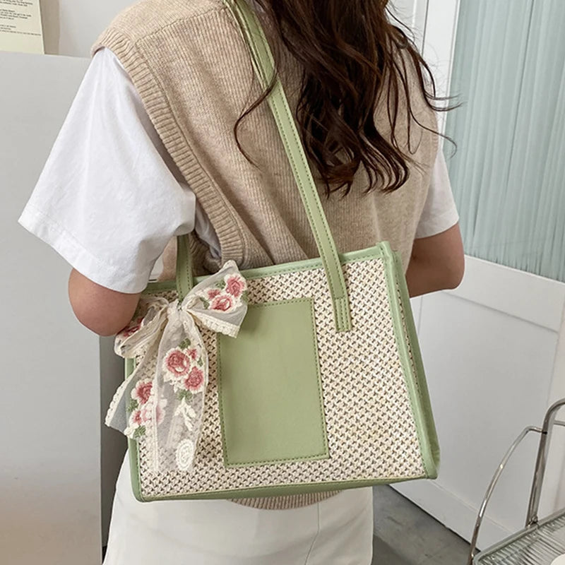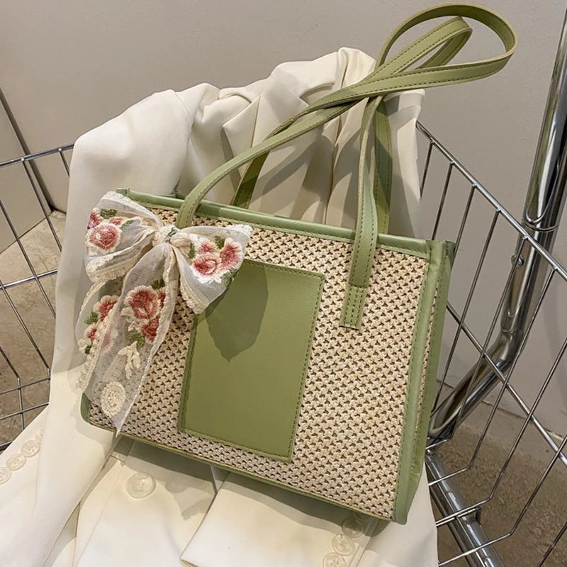 Bohemia Rattan Straw Bag with Floral Embroidery Bow
